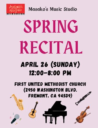 We are offering both onsite and online private lessons. Please see and follow the attached safety guideline. We will have 2026 Spring Concert on April 26 (Sunday). Please come and enojoy the concert!